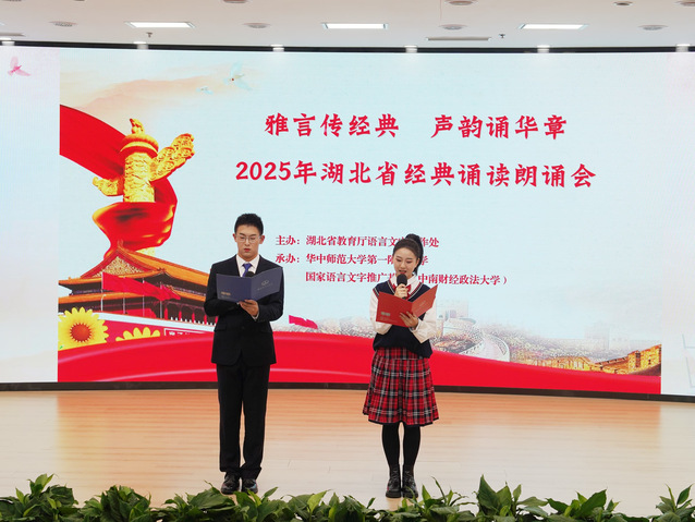 (学生通讯员 卢欣彦 刘键蓝 钟知方 思茵茵)为深入贯彻落实习近平总书记关于教育的重要论述和关于语言文字的重要指示批示精神,弘扬中华优秀传统文化,10月27日下午,由湖北省教育厅语言文字工作处主办,国家语言文字推广基地(中南财经政法大学)、华中师范大学第一附属中学共同承办的“湖北省2025年经典诵读朗诵会”在华中师大一附中一号报告厅隆重举行。