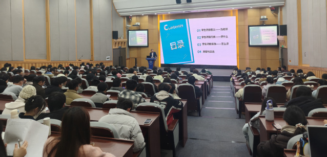 新闻网讯(通讯员 望艺文 陈金好)为帮助学生深入理解学生评教的意义与改革举措,引导其积极、客观、理性地参与教学评价,共同提升本科教学质量,12月25日下午,本科生院院长钱学锋教授在首义校区浙晓报告厅为大一新生作了一场题为《倾听你的声音,共筑理想课堂》的专题宣讲。本科生院、党委学生工作部相关人员一同参与活动。